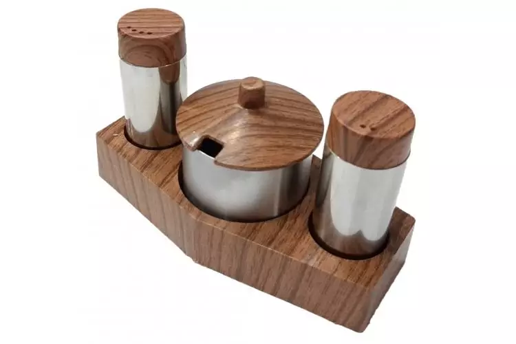 3 Lü Baharatlık Tuzluk Takımı Ahşap Görünümlü