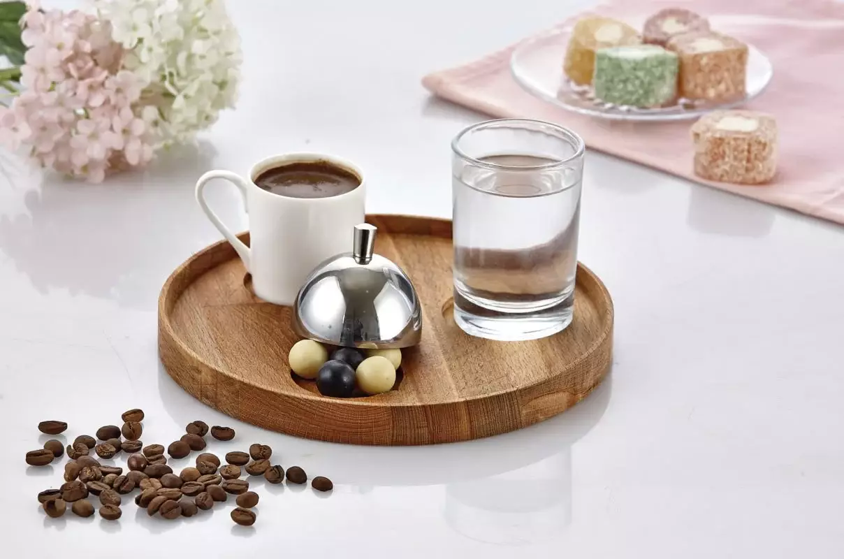 Ahşap malzemesi sayesinde rustik ve şık bir atmosfer yaratır; kahve keyfini hem evde hem misafir sunumlarında zenginleştirir.