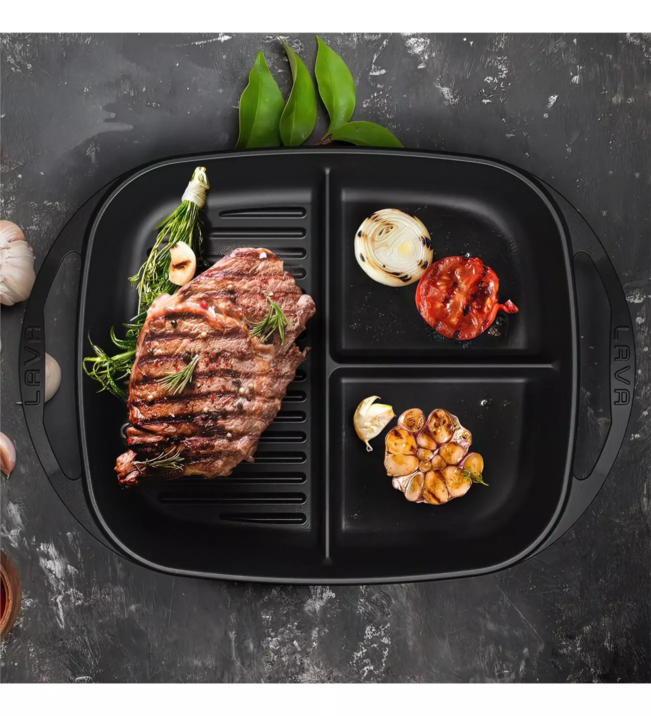 Lava Bölmeli Kulplu Tava 26X30 Cm Siyah