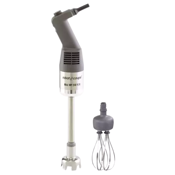 Robot Coupe El Blender Mini MP 240 Combi -Güç: 290 W -Voltaj: Tek fazlı 230 V -Hız: Mikserde 2000-12500 rpm, Çırpmada 350-1560 rpm -Bıçak ve Boru: Uzunluk 240 mm – Tamamen paslanmaz çelik -Çıkarılabilir Bıçak: Var -Çıkarılabilir Çan: Var -Çıkarılabilir Ayak: Var -Metal Çırpıcı Kutusu: Var -Boyutlar: Toplam uzunluk: Boruyla 535 mm, Çırpıcıyla 550 mm, Çap 78 mm -Brüt Ağırlık: 2,8 kg -Aksesuarlar: Paslanmaz çelik duvar askısı